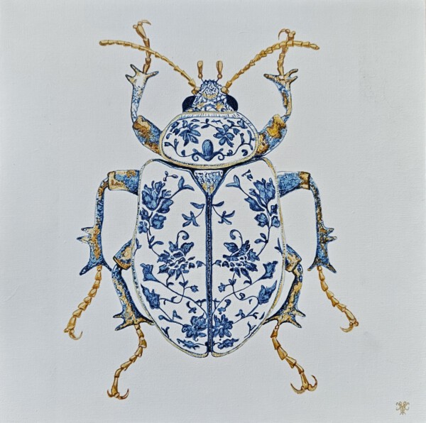 Deze kever is geschilderd met acryl op een paneel van 30 x 30 cm